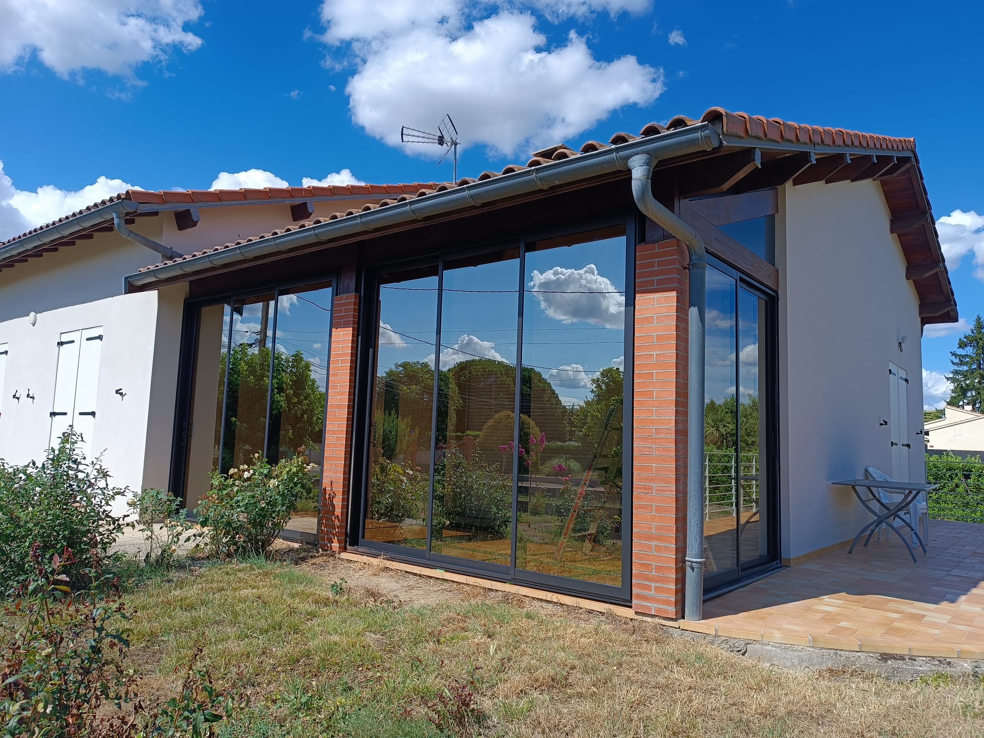 VITREAL a réalisé la fermeture d’une terrasse à l’aide de menuiseries K•Line équipées d’un vitrage Stopsol, pour un rendu à la fois moderne, discret et performant.